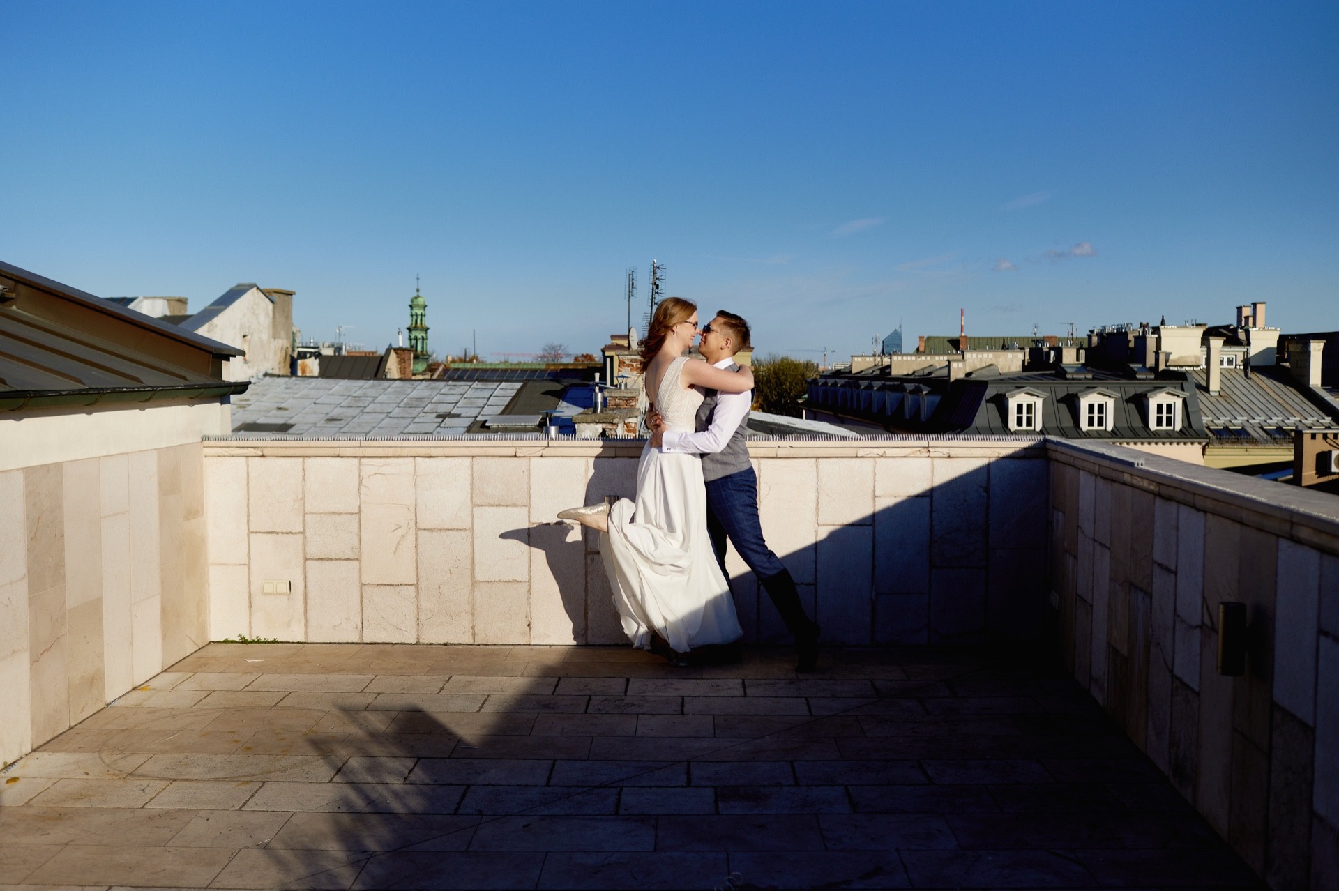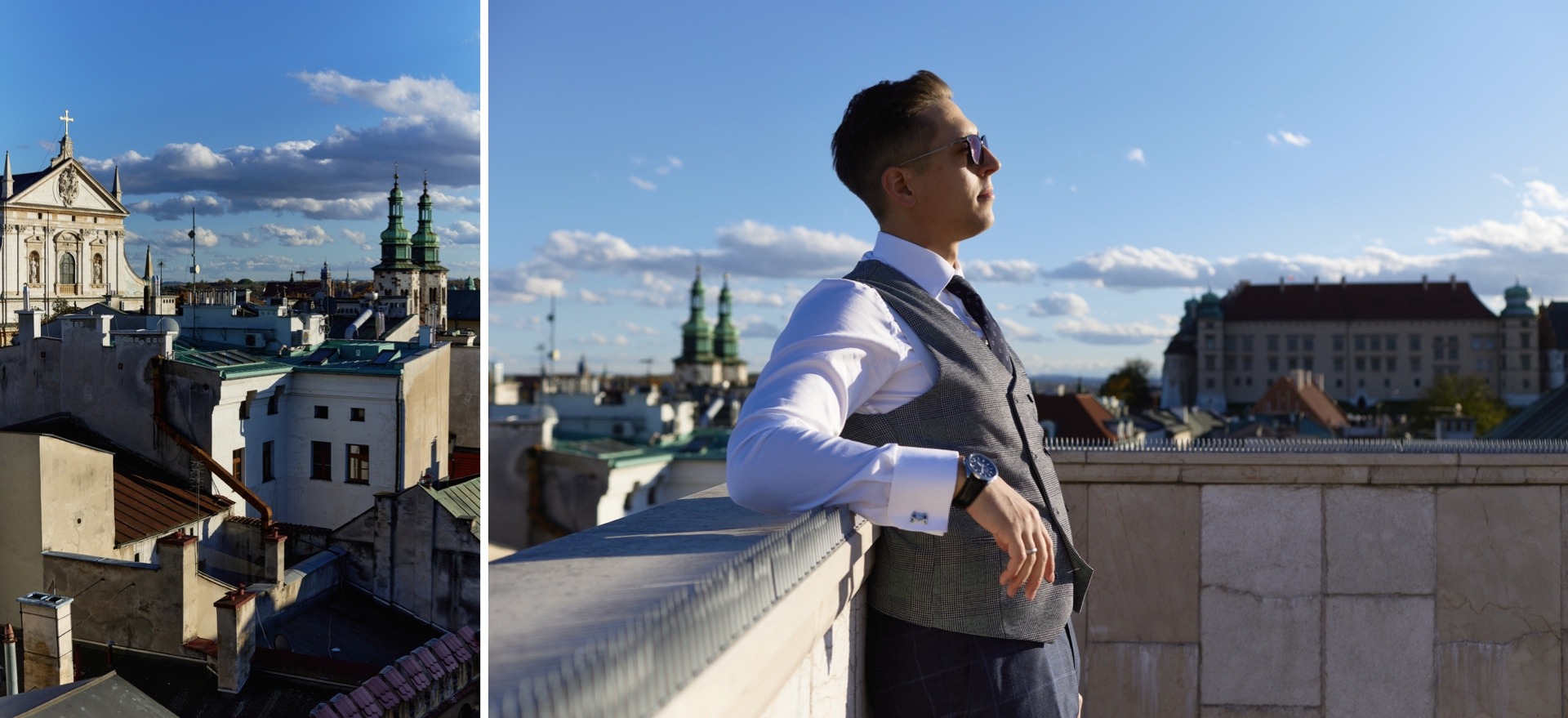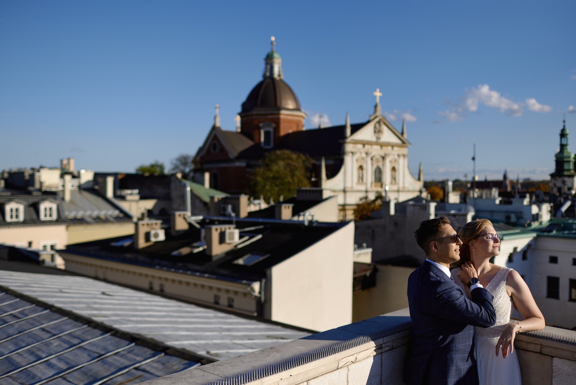Wraz z Magdą i Adim zwiedziliśmy nie tylko urokliwe krakowskie uliczki na Starym Mieście. Część zdjęć wykonaliśmy na dachu jednej z kamienic, z którego rozpościerał się fantastyczny widok na miasto. Kadry te pozwoliły nam spojrzeć na Kraków z nieco innej perspektywy – kopuły kaplic i kościołów, dachy innych kamienic, a wszystko to w blasku całkiem ciepłych jeszcze, październikowych promieni słonecznych.