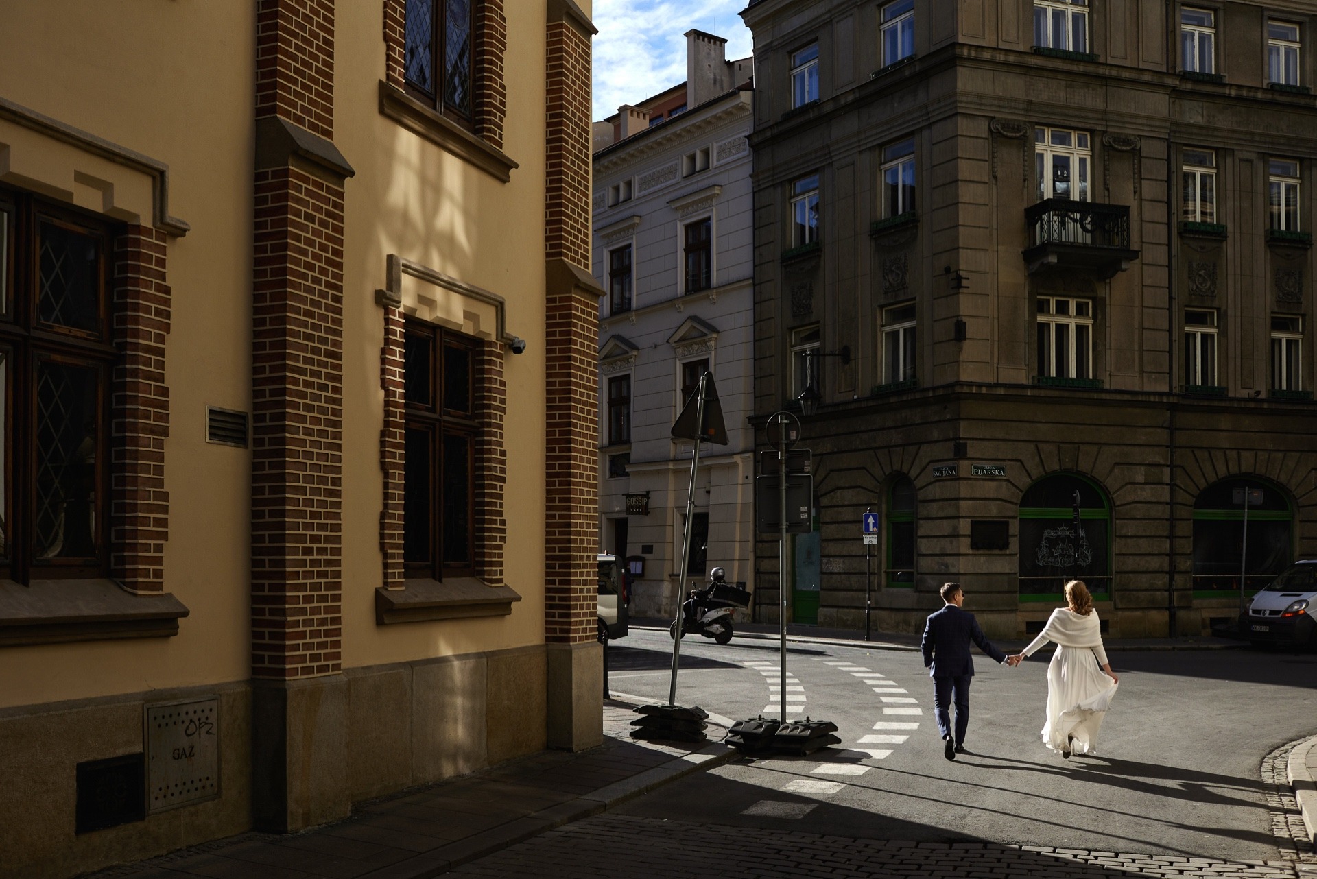 Plener w Krakowie Magdy i Amadeusza to najlepszy dowód na to, że ślubny plener może odbyć się o każdej porze roku. Realizowałem już niejedną sesję w plenerze jesienią czy zimą, również w zimnych regionach Europy, takich jak Islandia. Nie tylko przyjemnie ciepły maj czy gorące lato są odpowiednim czasem na plener ślubny. Trzeba przyznać, że tym razem aura bardziej przypominała tę z późnego lata niż jesieni – prawdziwe babie lato zaoferowało nam i piękną, słoneczną pogodę, i przyjazną – szczególnie dla Panny Młodej – temperaturę, ale również tak bardzo cenione przez wielu z nas jesienne krajobrazy, pełne złotych liści, które również znajdziecie w plenerze w Krakowie Magdy i Adiego. Serdecznie zapraszam do obejrzenia październikowej sesji ślubnej z krakowskiego Starego Miasta.