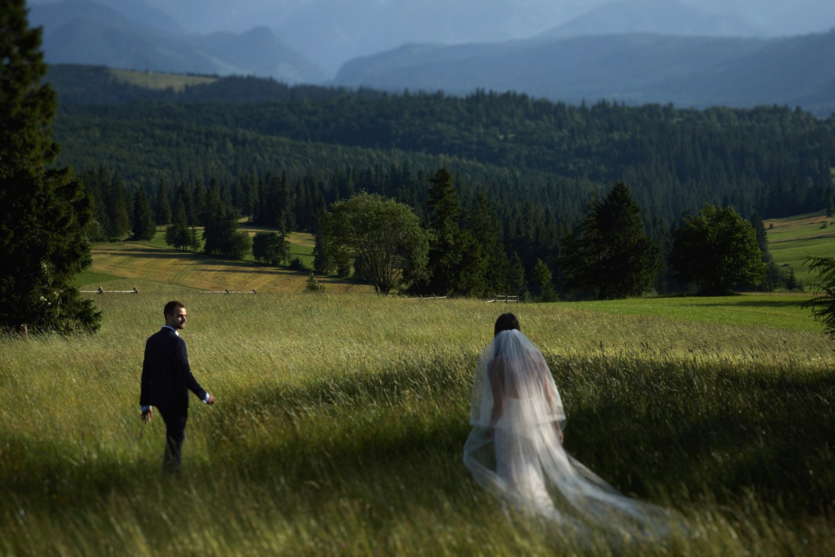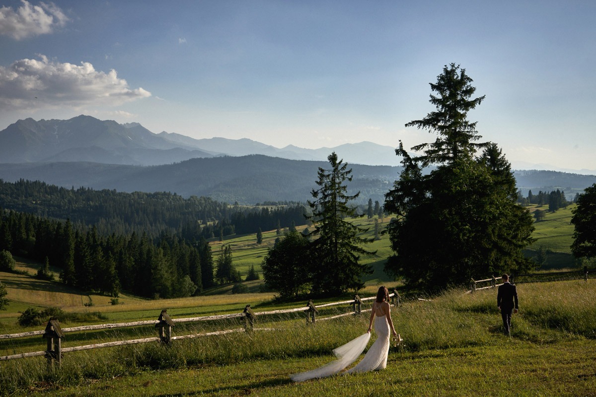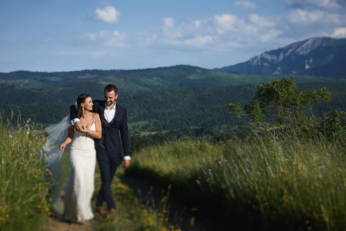 Sesję ślubną w Tatrach możemy wykonać także na jednej z licznych polan – na taką opcję zdecydowali się również Ania i Andrzej. Sami zobaczcie ich wymarzony plener ślubny w górach.
